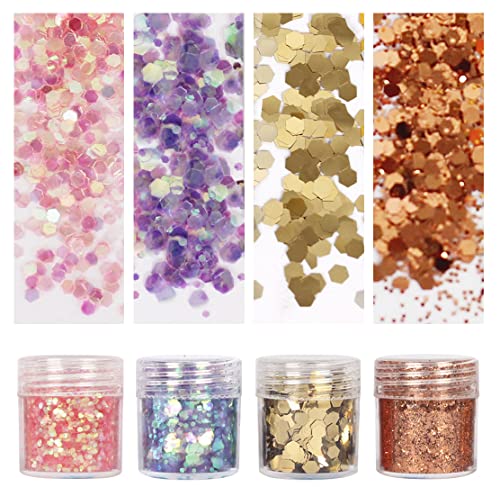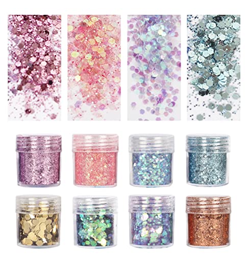 - MULTIPLE USES - Those glitter are super CREATIVE for DIY lovers.You can use the chunky glitter to decorate any artcraft you like, cell phone's case, glasses,nail arts, eye makeup, body arts.