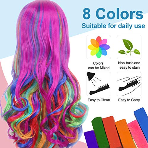 - 【Various Colors】 There are 8 colors to choose from. Easy to color, easy to clean, and can be colored by directly combing. Color your hair with different outfits or different colors. (Hint: your hair color is lighter (such as blonde hair), then the color is darker; if your hair is dark brown or black, it is recommended that you choose a bright color for best results.) Please understand that there may be some pictures The color tone is slightly different from the actual color tone!