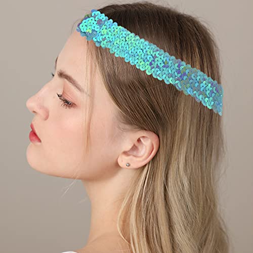 8 Pcs Sequin Headband Women Sports Headband Elastic Non Slip Headdress Shiny Style Accessories for Girls Women