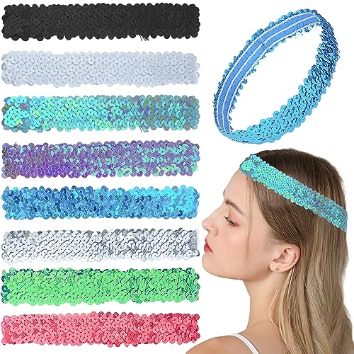 8 Pcs Sequin Headband Women Sports Headband Elastic Non Slip Headdress Shiny Style Accessories for Girls Women 8 Pcs Sequin Headband Women Sports Headband Elastic Non Slip Headdress Shiny Style Accessories for Girls Women