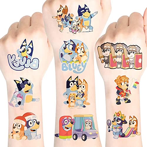- Cute And Funny Blue Themed Tattoos: Cute Blue Temporary tattoos Stickers, features an assortment of themed characters, colors are bright, and designs are adorable, use them as party favors and your kids will love. Perfect for themed party, birthday activities, school reward and other party events. They will be your kids' favorite small gifts.