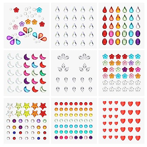 - Package Content: You will receive 9 sheets of face stickers in various styles. The crystal appearance makes them more shiny under the light and sun. The sufficient quantity and assorted styles can meet your makeup need.