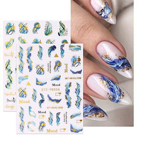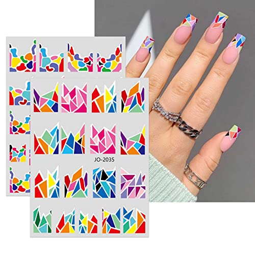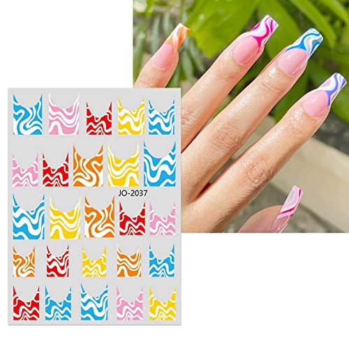 Home Nail Care 9 Sheets Marble French Tip Nail Art Stickers Decals Self-Adhesive Colorful Line Nail Supplies Nail Art Design Decoration Accessories