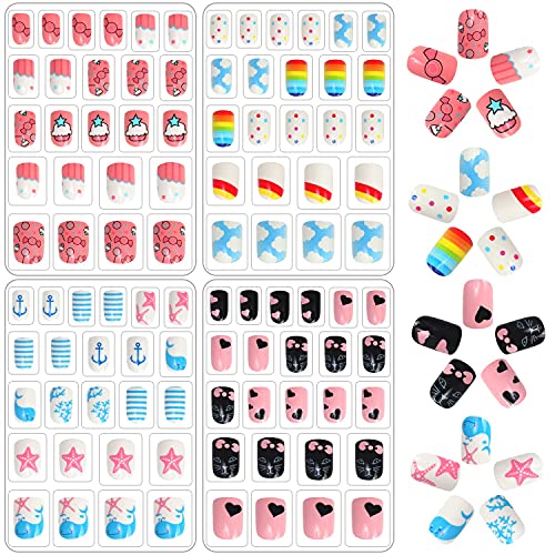 - PACKAGE CONTENT - You will receive four boxes of children's artificial nails with different patterns, each box has 24 pieces of artificial nails of different sizes. It is a beautiful gift for wife, girlfriend, mother or sister, but also a birthday gift and an good gift for Christmas.