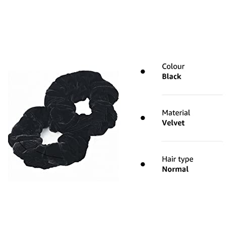 AADYA® Pair of Extra Large (15CM) Velvet Hair SCRUNCHIES Elastic Scrunchy Hair BOBBLES (Black)