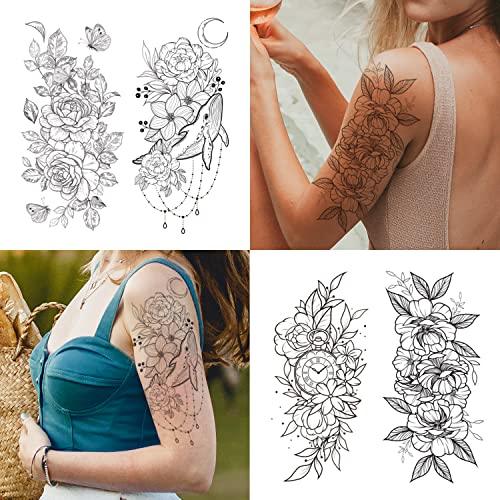 - 【Realistic & Unique Designs】These fake tattoos have a wide element, which contains various flowers, wild plant, butterfly, sun, and so on. The realistic design makes the tattoos look indistinguishable from the real ones, allowing you to create realistic tattoos painlessly and easily!