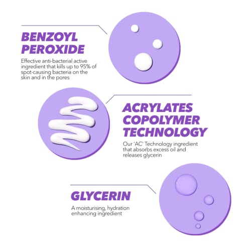 - ACTIVE INGREDIENT: Contains 5 percent benzoyl peroxide; clinically proven to target and reduce spot-causing bacteria by up to 95 percent in 1 week