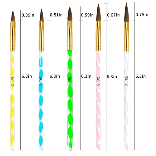 - Size: Our brushes are in 5 colors and 5 different sizes,5 different sizes include 4, 6, 8, 10, 12. Size 12(17.5cm/6.88inches long), size 10(16.8cm/6.61inches), size 8(17cm/6.69inches), size 6(17cm/6.69inches), size 4(16.8cm/6.61inches)