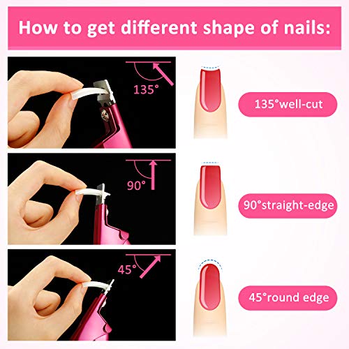 - Practical to use: the nail tip trimmer comes with handle design for easier handling and controlling, which can help you trim false nails into the different shapes by adjusting the angle of the nail clipper, such as straight-cut, round-cut and so on, the cuticle pusher is nice to cut or scrape dead cuticle away, the nail files is suitable for trimming your nails into proper length