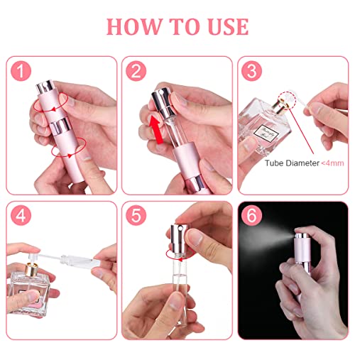 • 【Easy to Refill】 First of all, Remove the cap of atomiser spray bottle, and press the nozzle few times to exhaust the air inside. Secondly, take off the cap of perfume bottle, press the upper end of the pipette to extract the perfume, the perfume will be transferred into the perfume atomizer ,easy to use.