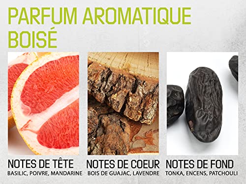 - Notes of basil, pepper, grapefruit, mandarin, lavender, guaiac wood, cypress, tonka, incense, tamboti, patchouli