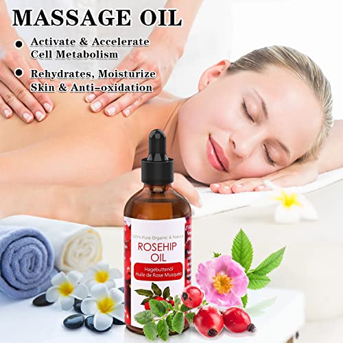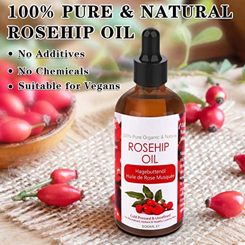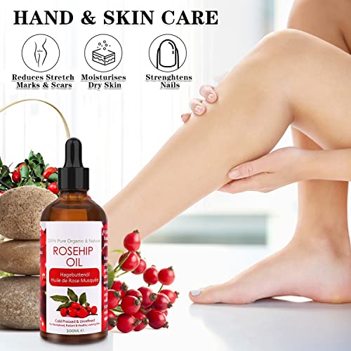 - SMOOTHER SKIN: Rosehip seed oil has anti-inflammatory properties work to reduce the appearance of puffiness, redness, and under-eye swelling; heals sun damaged skin and helps to improve the appearance of burns, acne, scars and stretch mark.