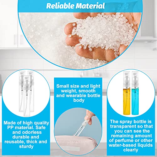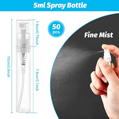 - ✨【Spring-loaded Button】Total 50 pieces of 5ml mini spray bottles, the spring-loaded button provides enough liquid to be sprayed in a fine mist, enough for all your families, father, mother, brothers, and you can give these 5ml Refillable Portable Travel Perfume Bottles to your friends and colleagues.If the received product is missing, please contact us by email and we will solve the problem for you