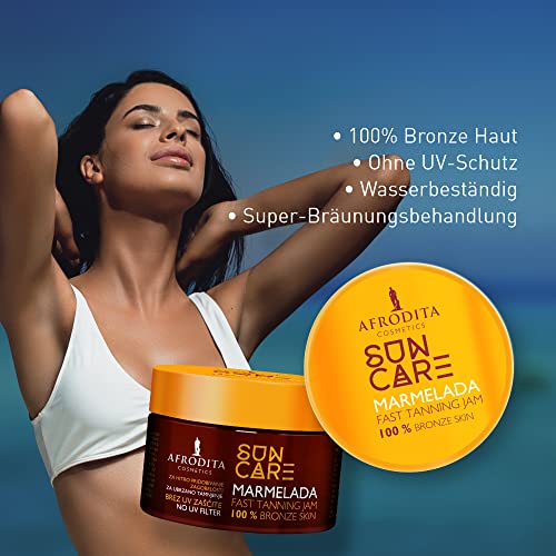 - 🔐 KEY PRODUCT ADVANTAGES – The jam ensures faster and more intense tanning, making the skin radiant. The precious natural oils provide adequate nutrients and moisture. This product does not provide UV protection.