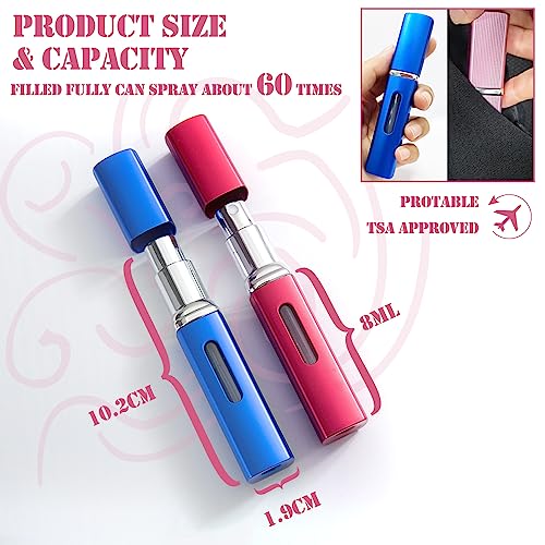 - [Mini Size] - Small as a lipstick is easy to keep in your handbag, purse, pocket, toiletry bag and luggage. 8ml perfume atomiser refillable bottle is portable and ideal for holidays, travels, vacations, parties or dates.