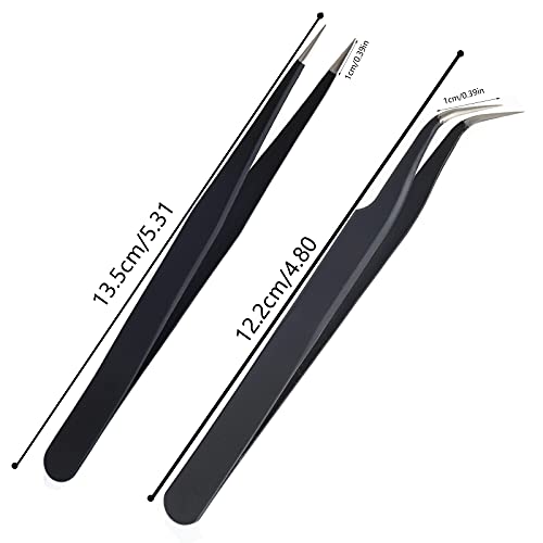 - Size Details: The length of the straight tip tweezers is 5.3inch and the length of the curved tip tweezers is 4.8inch, appropriate size is convenient for your use.