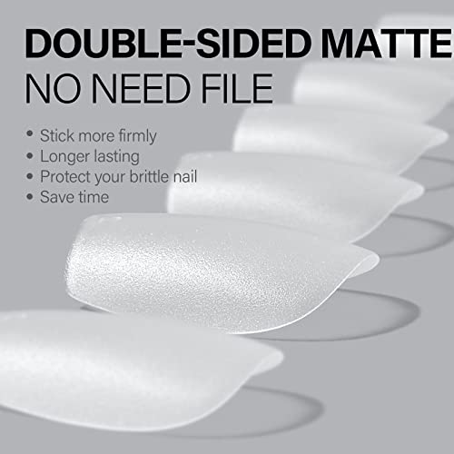 - FULL MATTE TEXTURE - Why choose AILLSA nail tips? Choosing upgraded double sides full frosted texture, the gel nail tips feature stronger adhesion, better fitting your natural nails. Using this acrylic nail tips, you can enjoy the privilege of “ NO NEED FILE, NO NEED BASE COAT ”. No worry that your nails will become thinner and uglier due to polishing, providing better care for your nails. Without base coat, you also can get the manicure effect you want, saving time and money.