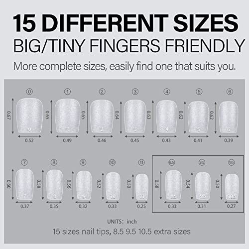 - EXTRA SHORT SIZES - Our nail tips are upgraded the nails’ length, friendly to short nail bed, more like your natural nails, without hindrance for daily life and work. Including 15 different sizes with each size 30pcs, totally 240pcs, our fake nail tips can provide you with more options. And there are numbers “0-14” marked on the tips, with storage bar design, easy to choose size and remove off. Also, the jelly nail tips are pre-shaped, suitable for professional manicurist and even beginner.