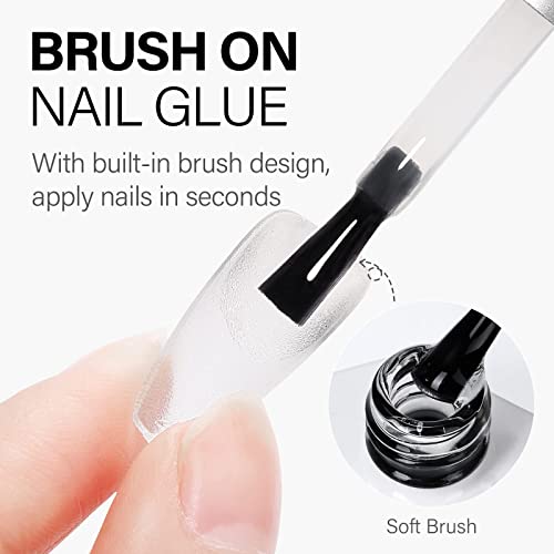- UPGRADED LARGE CAPACITY - The brush on nail glue features 15ml high capacity, having long shelf life, not easy to deteriorate or solidify, which can fully meet your daily nail art demand. Also, the fake nail glue with built-in brush design, soft and smooth, which can control the amount of glue, helping you apply nails in seconds, friendly to nail beginners.