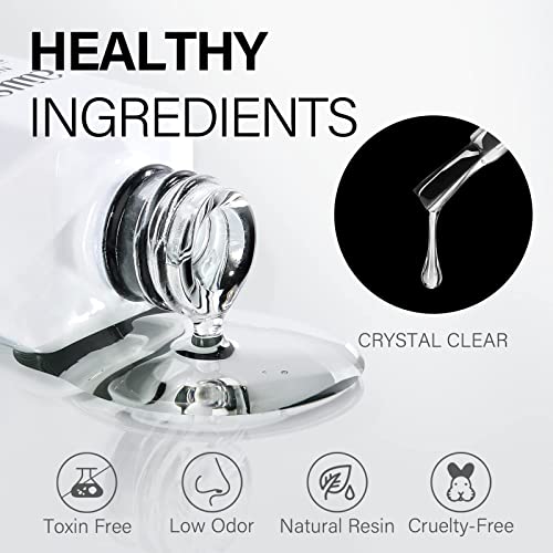 - HEALTHY INGREDIENT - The nail gel glue is made of natural resin material, cruelty-free, low odor and toxin-free, no harm for your nails. And the nails glue looks crystal clear, which will not turn yellow after opening, more like natural nails after applying.