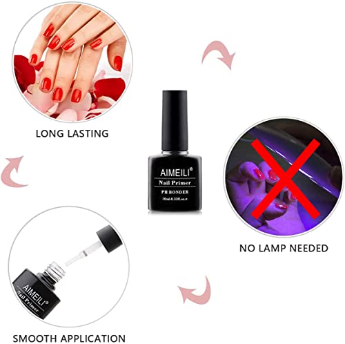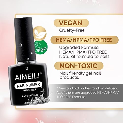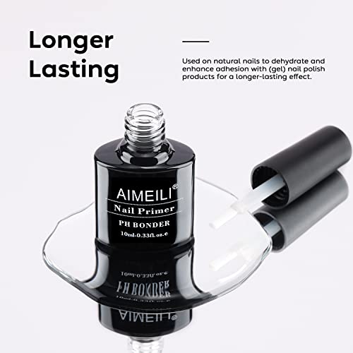 AIMEILI Nail Primer, Nail Pre-Step Bonding Primer for Acrylic Nails UV Gel Polish Nail Bonder Primer Gel No Need Cure 10ml