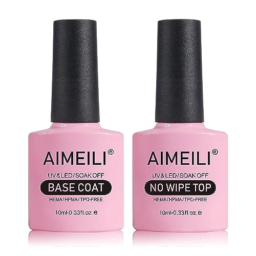 AIMEILI No Wipe Top Coat and Base Coat Gel Nail Polish Set, Shine Finish and Long Lasting, UV LED Soak Off Gel Nail Lacquer Gel Nail Polish Varni AIMEILI No Wipe Top Coat and Base Coat Gel Nail Polish Set, Shine Finish and Long Lasting, UV LED Soak Off Gel Nail Lacquer Gel Nail Polish Varni