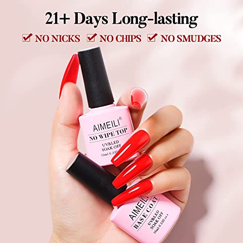 AIMEILI No Wipe Top Coat and Base Coat Gel Nail Polish Set, Shine Finish and Long Lasting, UV LED Soak Off Gel Nail Lacquer Gel Nail Polish Varni