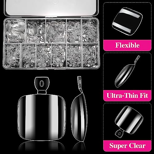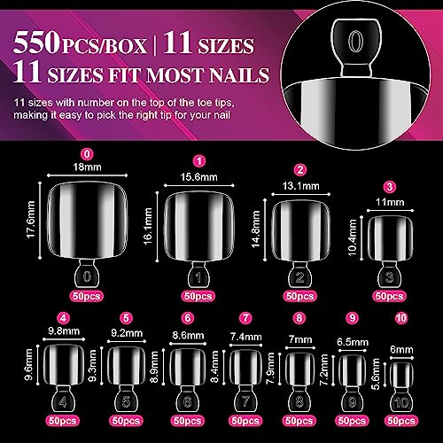 AIMEILI Soft Gel Full Cover Toe Nail Tips, 550PCS Clear Gel Nail Tips False Nail Artificial for Nail Extension, Acrylic False Press on Nails with