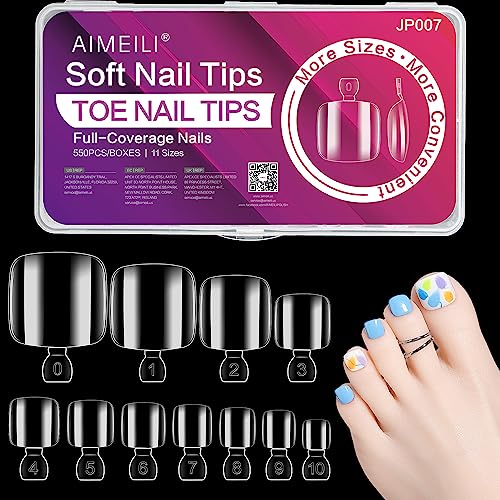AIMEILI Soft Gel Full Cover Toe Nail Tips, 550PCS Clear Gel Nail Tips False Nail Artificial for Nail Extension, Acrylic False Press on Nails with AIMEILI Soft Gel Full Cover Toe Nail Tips, 550PCS Clear Gel Nail Tips False Nail Artificial for Nail Extension, Acrylic False Press on Nails with