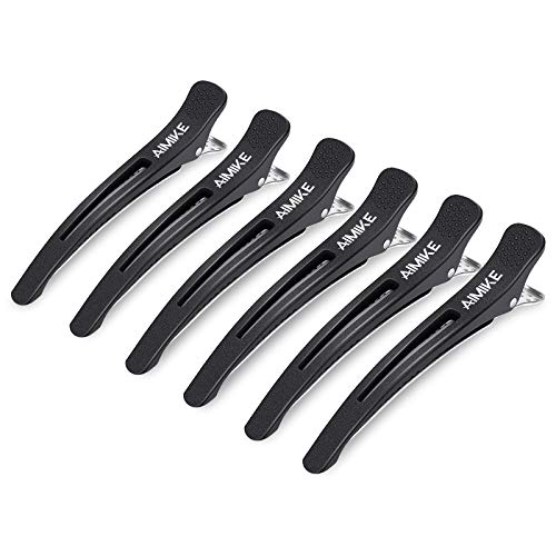 AIMIKE 6pcs Professional Hair Clips for Styling Sectioning, Non Slip No-Trace Duck Billed Hair Clips with Silicone Band, Salon and Home Hair Cutt