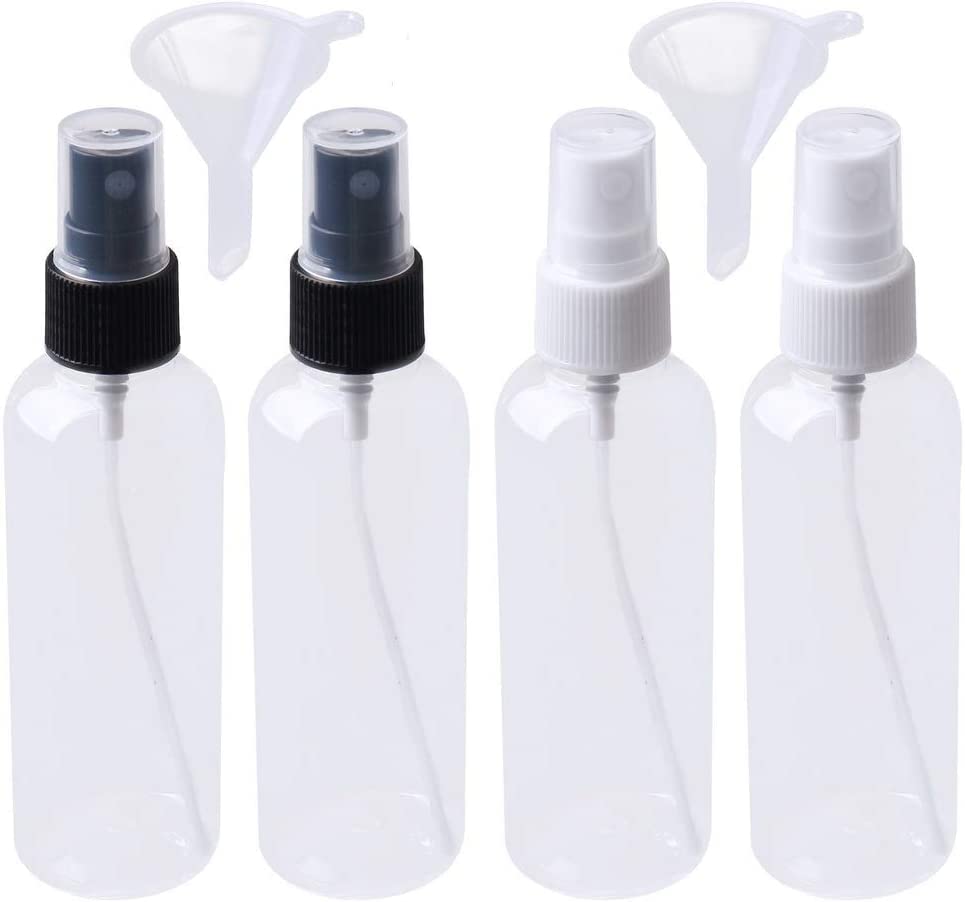 Home Fragrance AKORD 6 Pieces Transparent Spray Bottle Set, 4 Pieces 100ML Clear Fine Mist Spray Bottles Plastic Empty Refillable Atomiser with 2 Pieces Funnel