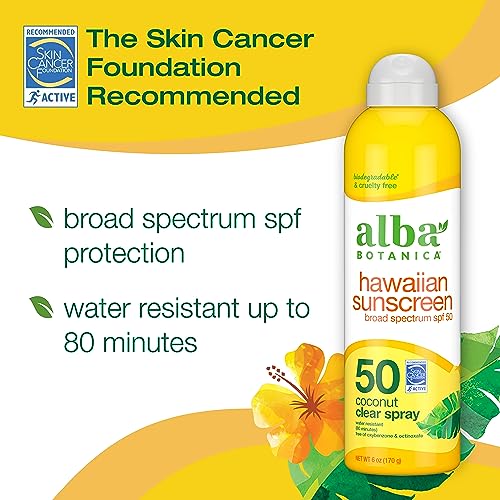 Alba Botanica Coconut Oil Hawaiian Clear Spray SPF 50 Sunscreen, 6 oz.