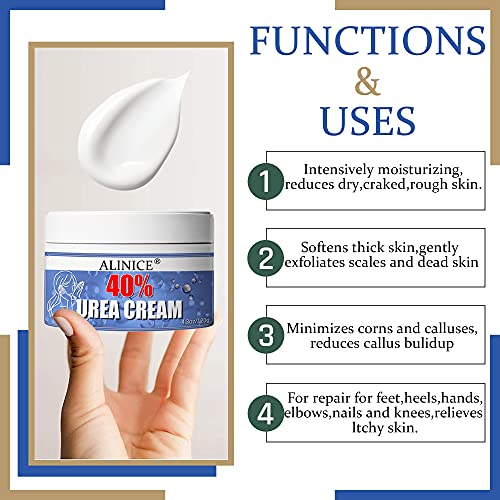 - EFFECTS: Our urea cream is dermatologist-tested Medical graded nursing urea cream. Intensively moisturize and nourish the hand and feet skin. Repairs dry, cracked, rough, bumpy, and aged skin. Minimizes appearance of corns and calluses. Softens and Nourishes thick, gentle exfoliates scales and dead skin.