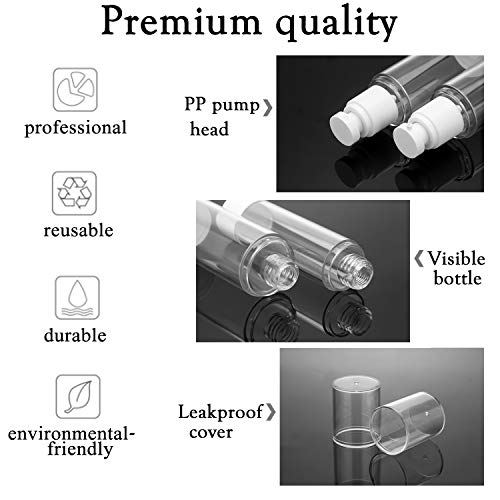 Home Fragrance Alledomain 6Pcs Airless Pump Bottle | Refillable Empty Clear Travel Lotion Pump Containers/Vacuum Press Pump Bottles for Foundation, Essence, Lot