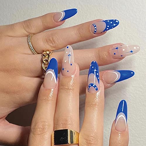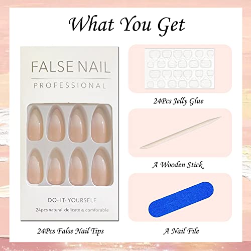 - 💅【24Pcs Nails】- You will get 24Pcs almond nail tips, 1 sheet self ahesive jelly glue (24Pcs), 1 nail files and 1 wooden sticks, Various nail tools to meet different your needs in nail art decoration that make yourself a nail art in few minutes.