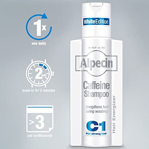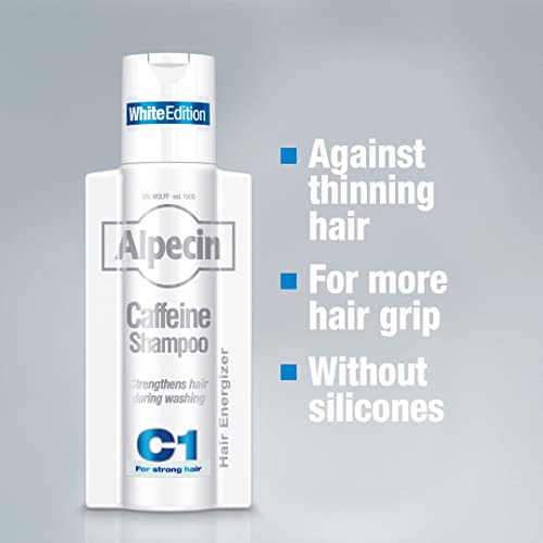 - HELPS TO FIGHT THINNING HAIR With its unique galenic formula and its optimal caffeine dosage (and other potent active ingredients) Alpecin C1 White shampoo supports natural hair growth.