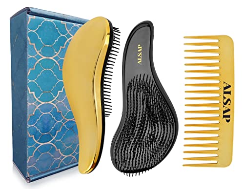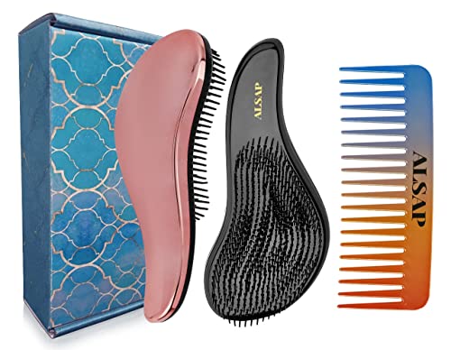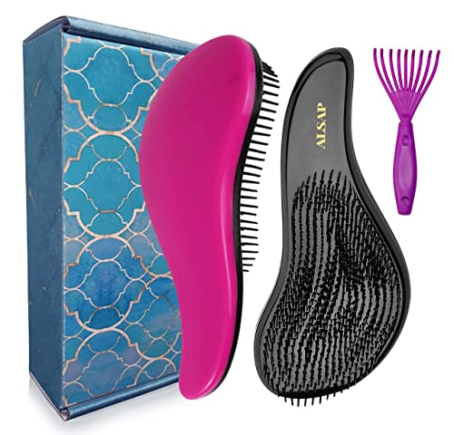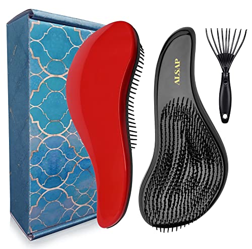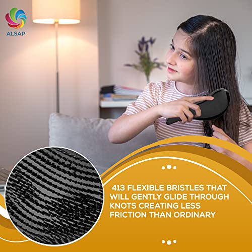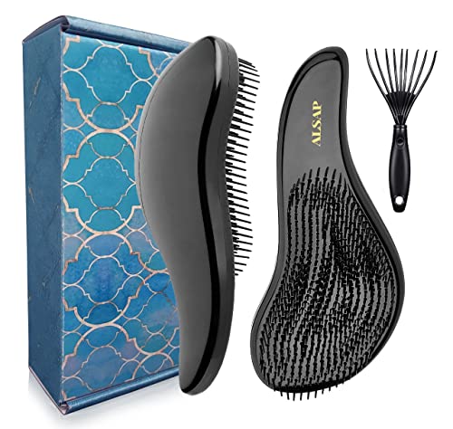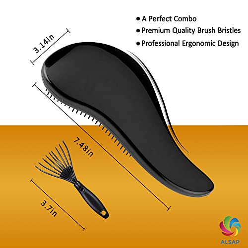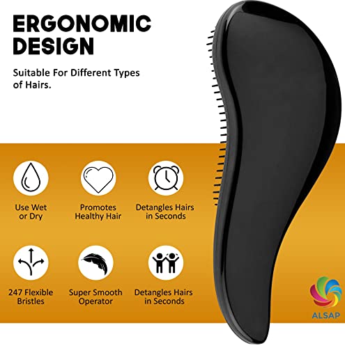 ALSAP Detangle Hair Brush With Hair Brush Cleaner (Black) – Ideal Hairbrush for Adults & Kids – Easy to Hold Wet Brush Suitable for Wet, Dry, Cur