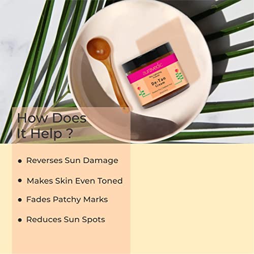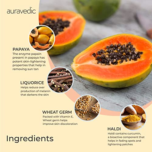 - Natural tan removal cream with papaya, turmeric, liquorice for sun tan removal, dark spots, skin whitening, skin brightening ingredients : papaya- the enzyme papain present in papaya has potent skin-lightening properties that help in removing sun tan and reduce the visibility of scars and blemishes.