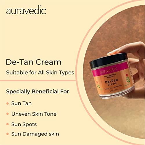 - The formula is designed to absorb quickly into dehydrated skin to smooth, nourish and brighten while providing a natural glow skin feels softer, smoother, well-hydrated and plumper and the visible effects of sun damage and scarring appear diminished. The cream also assists in boosting natural radiance and creating a more even tone.; Package Contents: 1 De Tan Skin Lightening Formula Face Cream; Quantity: 100 Gm