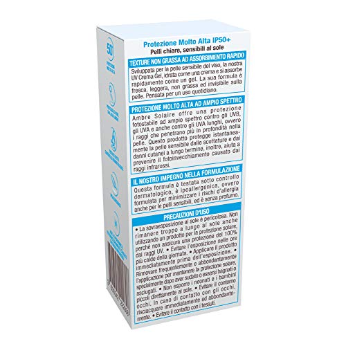 - Face cream with SPF 50+, suitable for all skin types and especially suitable for light and sun-sensitive skin