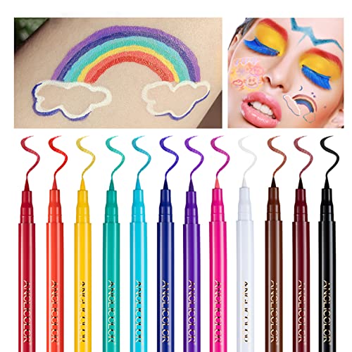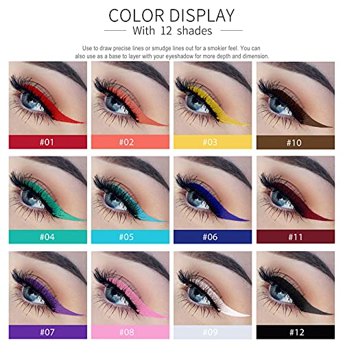- 💝VIVID BRIGHT MATTE EYELINERS: The Coloured eyeliner pen is available in 12 matte rainbow colours, highly pigmented formula, easy to apply and coloured, natural and comfortable formula that be glides on smoothly, high precision tip that draw sharp line, intense colouring.