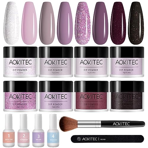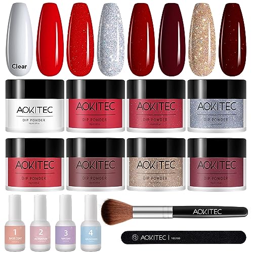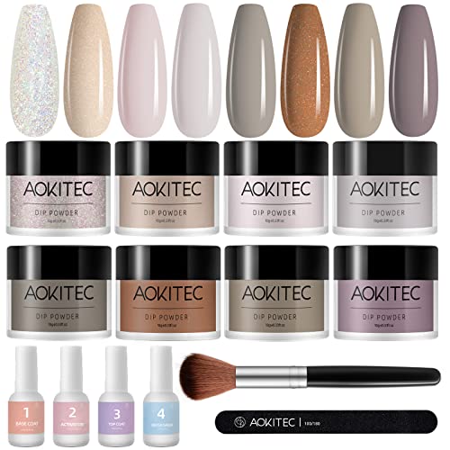 - 【Large&Super Affordable】8❤fantastic colors nail dip powder (10g each), 4❤Dip liquids essential set (with base&top coat,activator,brush saver 15ml each), 3❤ Additional professional dip manicure tool (with a Professional nail brush,a huge double-side nail file,1❤User Manual).Aokitec home dip powder nail kit can get nail art salon-quality equipment for small fee. Not satisfied 100% Money Back Guarantee, worry-free 18-month friendly customer service.