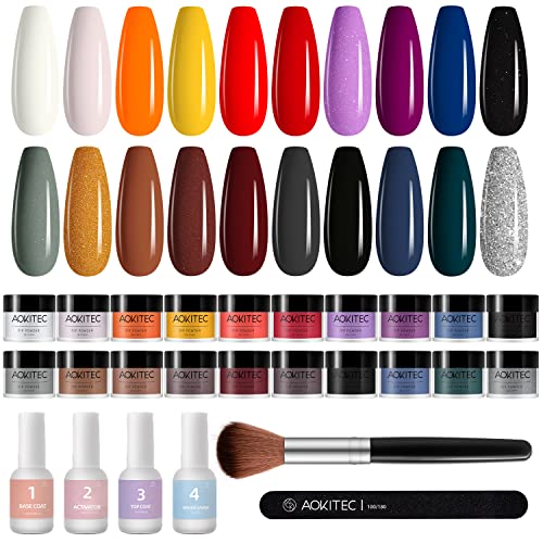 - 【Easy To Operation】Aokitec Dip powder should be used with top, base coat and activator, Apply it in right way,it can last more than 2 weeks. Don't waste money on nail salon anymore.Doesn’t need nail lamp to cure, which can avoid to damage your skin. It's a faster way to paint your nails.