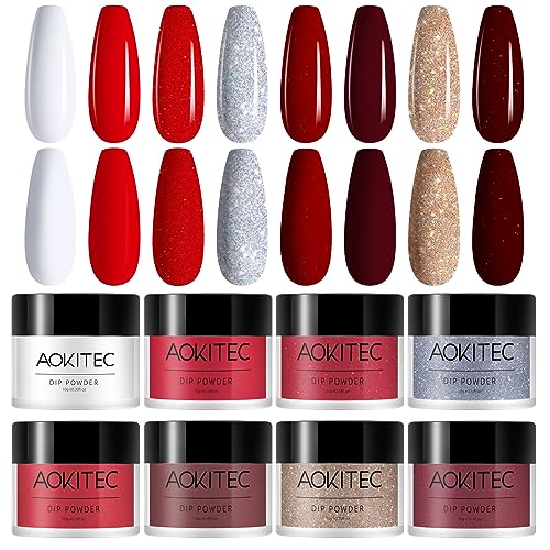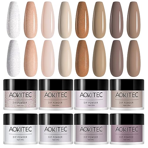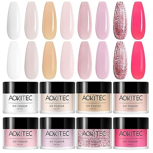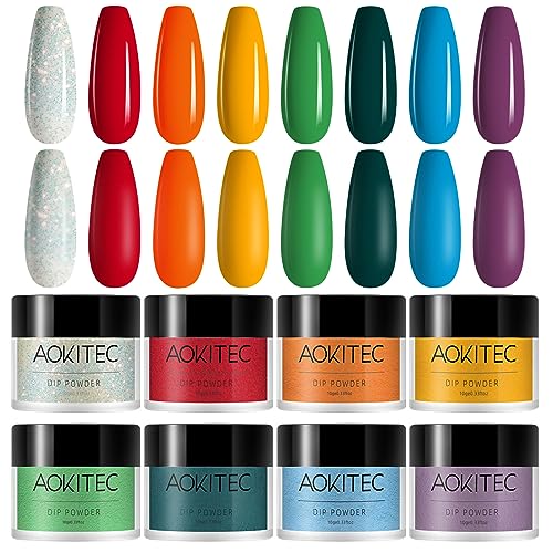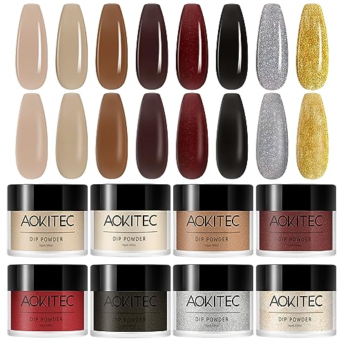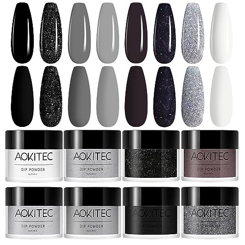 - 🖤【EASY TO OPERATION】Aokitec Dip powder should be used with top, base coat and activator, Apply it in right way,it can last more than 3 weeks. Don't waste money on nail salon anymore.Doesn’t need nail lamp to cure, which can avoid to damage your skin. It's a faster way to paint your nails.