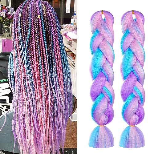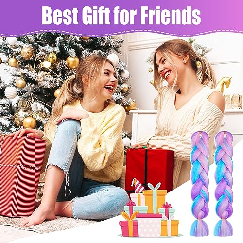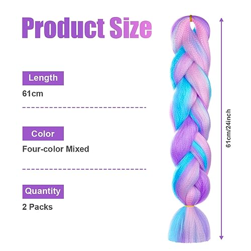 Aomig Braiding Hair Extensions, 2Pcs 4 Tone Colorful Braid Hair Extension, Jumbo Braids Hair Extension Synthetic Wig, Fashion Synthetic Braid Hai Aomig Braiding Hair Extensions, 2Pcs 4 Tone Colorful Braid Hair Extension, Jumbo Braids Hair Extension Synthetic Wig, Fashion Synthetic Braid Hai