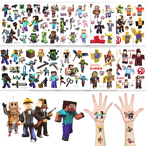 Home Make Up AOOWU Temporary Tattoo for Kids, 8 Sheets My World Kids Tattoos Sticker, Waterproof Fake Tattoo Set, Childrens Cartoon Stickers Stick on Tattoo f