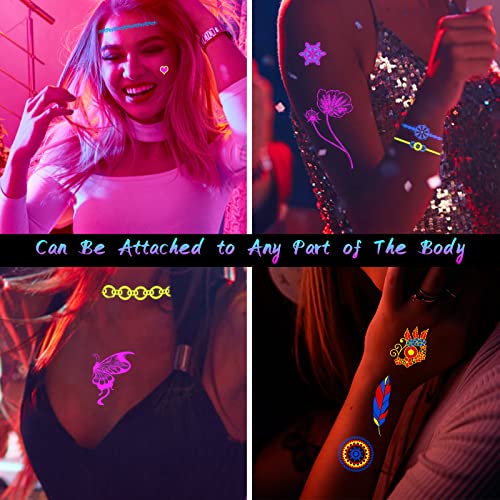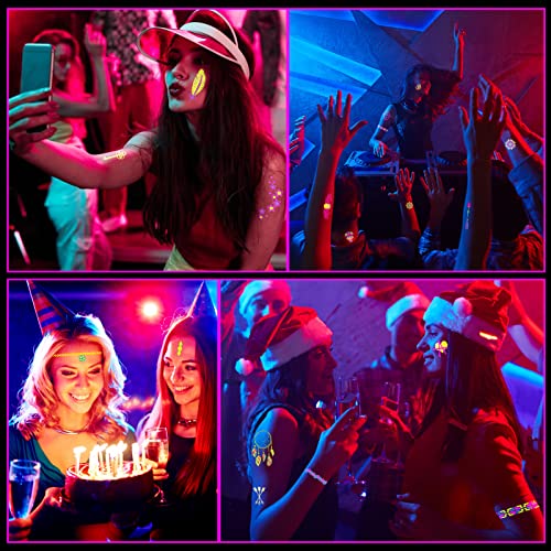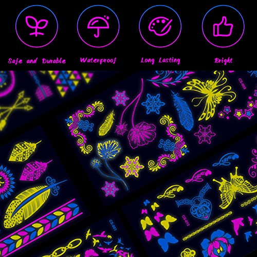 - 【Fluorescent Design】The tattoo stickers will glow under ultraviolet light, with bright colors, good light effect, high comfort, and good firmness. It is very suitable for concerts, nightclubs, bars, parties and other places with ultraviolet light equipment