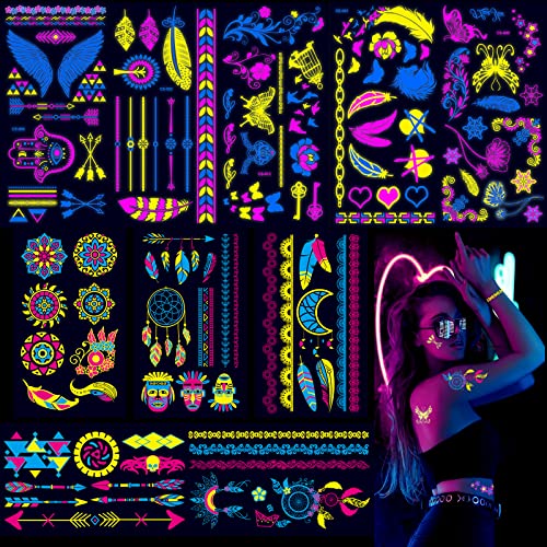 - 【Package Included】You will receive 5 large neon temporary tattoos and 5 small neon temporary tattoos, containing more than 100 different patterns, such as flowers, dream catchers, arrows, butterflies, etc., enough for your daily needs or with friends share