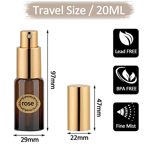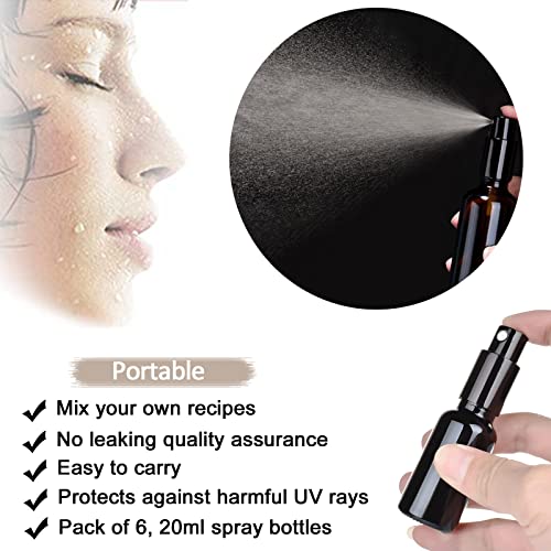 - ❤️ Great Value - Package included 6 sturdy 20ml glass spray bottles, 6 labels and 1 dropper, easy to clean and reuse. Labels help you mark different oils and the dropper help you refill the oils easily. These spray bottles also perfectly matching your creativity and to meet your various needs! Perfect gift option for your vacation companion or family member.