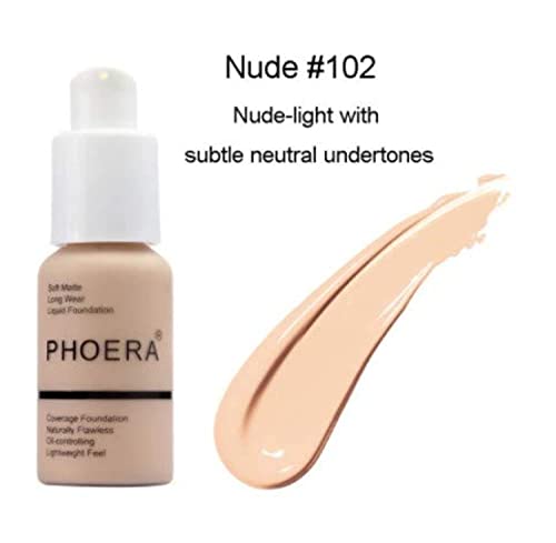 Aquapurity Phoera® Full Coverage Foundation Soft Matte Oil Control Concealer 30ml Flawless Cream Smooth Long Lasting (102 NUDE)